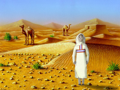 My name is Haya. I am 15 years old and a member of the Berber tribe. I live in the Sahara Desert in Mali, West Africa, with my sister Dina. My people are farmers who grow citrus fruits, cereals, and olives. We get our water from nearby springs and underground irrigation. To escape the heat, we build our homes in the dirt. We have two pet camels, Abu and Ebu. Camels are great because they can withstand the heat and are able to store large amounts of water in their bodies.
