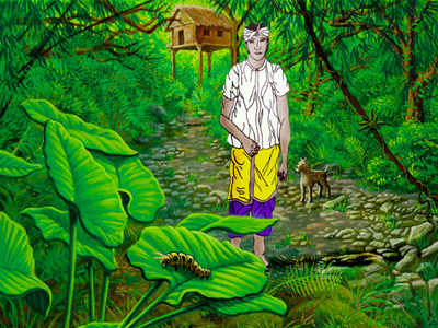 If our world is ever uninhabitable, I would be an excellent person to take along. I fight with courage and can hunt just about anything with my dog Agung. Agung helps me when I can't find any pigs for dinner. He is also my best friend. I can fulfill my hunger with just about anything, insects included.