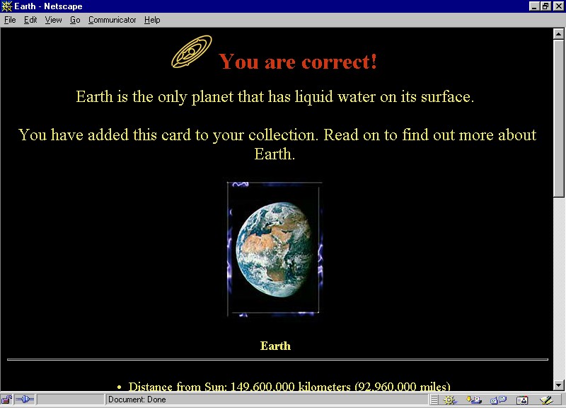 The Solar System Trading Cards include amazing pictures taken by the Hubble Space Telescope and various NASA missions. The object of the intereactive card game is to collect the trading cards as you identify the sun, planets, comets, and asteroids of our solar system by answering questions about them.