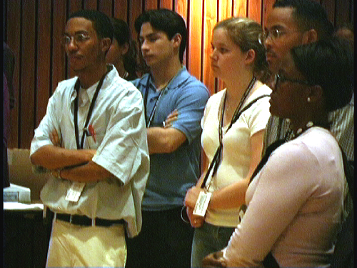 his students. He is shown here briefing senior officials at Glenn