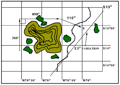 1. True course plus or minus the variation equals magnetic course, "east is least, west is best."
