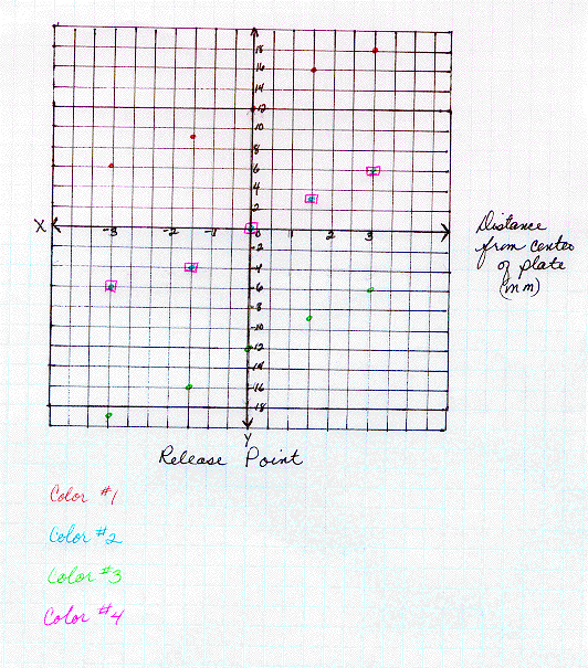 Using four different colored pens graph the information on the graph provided. In each of the graphs the Release Point will be x.