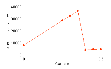 Step 4. Set the camber at 0. Record lift. Increase camber to .25, .30, .35, .40, .45, and .50 and record the changes in lift for each setting. Graph camber vs. lift with the data recorded. Is it possible for camber adjustment to initiate a stall? Explain.