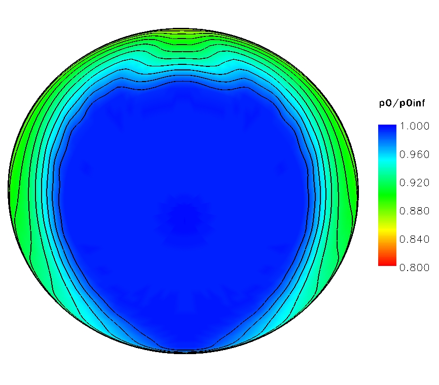 Two quantities of interest in this duct are the area averaged total pressure recovery at the aerodynamic interface plane or AIP and the throat Mach number. To compute these quantities, which are given in Table 3 below, the CFPOST postprocessor was used with the command file cfpost.avg.com as follows.