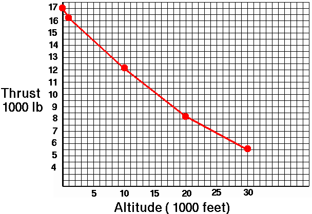 Calculate the thrust of a Pratt & Whitney JT8D-17 jet engine (17,000 pounds at sea level)