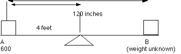 pounds and the total moment 6000 inches-pounds, the balance point is