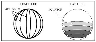 The spaces between the latitude and longitude lines are called minutes, which are divided into 60 equal segments. For example, a set of coordinates could be 30o, 20 minutes north by 80o, 15 minutes west. The intersection of these lines is your location on Earth.
