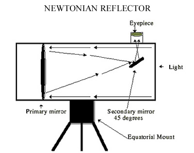 - The secondary mirror sits at a 45o angle, so that the objects can be seen through the eyepiece, which sits on top of the telescope at a 90o angle to the entering light.