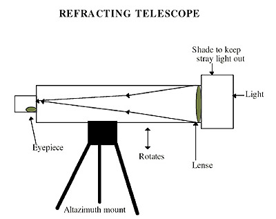 Light comes into a tube, hits a lens at the front, and is refracted or bent.