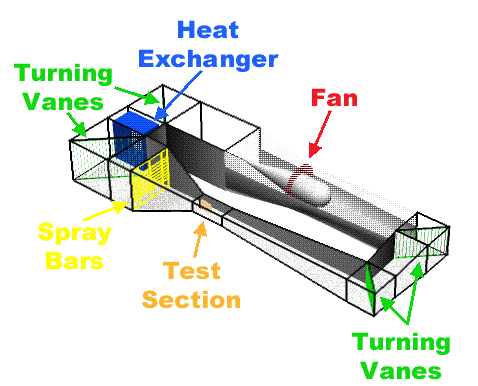 Fan - Test Section - Turning Vanes - Heat Exchanger - Spray Bars