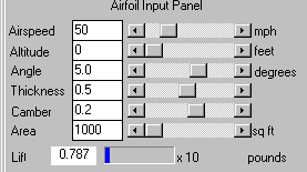 Input various values for the airspeed of the airplane. Each time an airspeed is entered, FoilSim will calculate the lift. Generate a set of airspeed and lift values. Record these values on the table on the Forces for Takeoff Worksheet or make a printout of them.