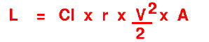 Lift = lift coefficient x air density x velocity squared / two x wing area