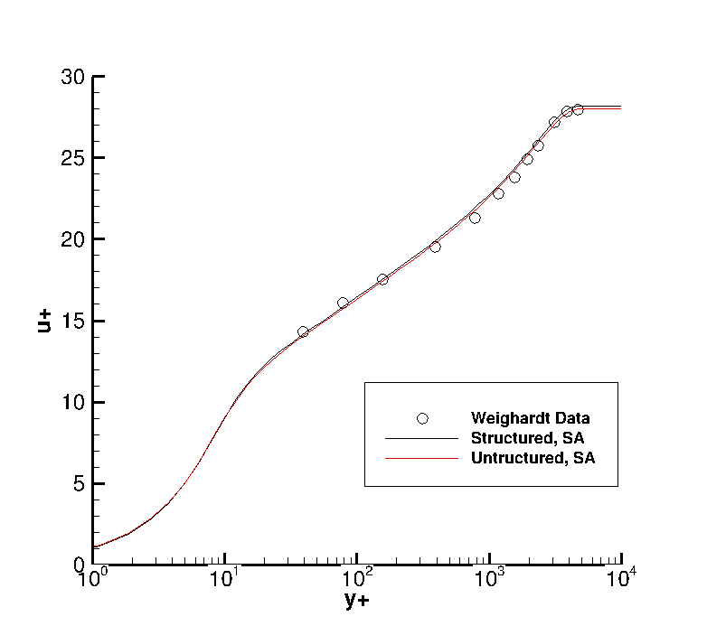 Figure 6. Spalart-Allmaras velocity profile